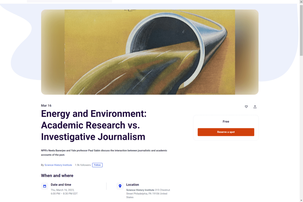 Panel discussion with Neela Banerjee (deputy senior supervising climate editor, National Public Radio) and Paul Sabin (Randolph W. Townsend Professor of History, Yale University), moderated by Cyrus Mody.